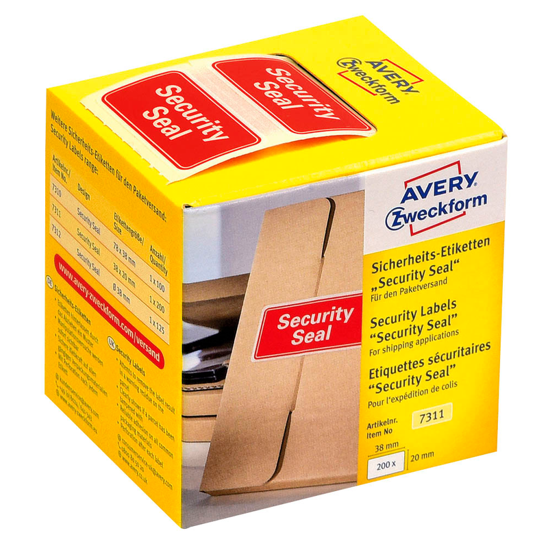 Artikelbild 1 für AVERY Zweckform Sicherheitssiegel 7311 rot »Security Seal« 38,0 x 20,0 mm, 200 Etiketten , Artikelnummer 431945