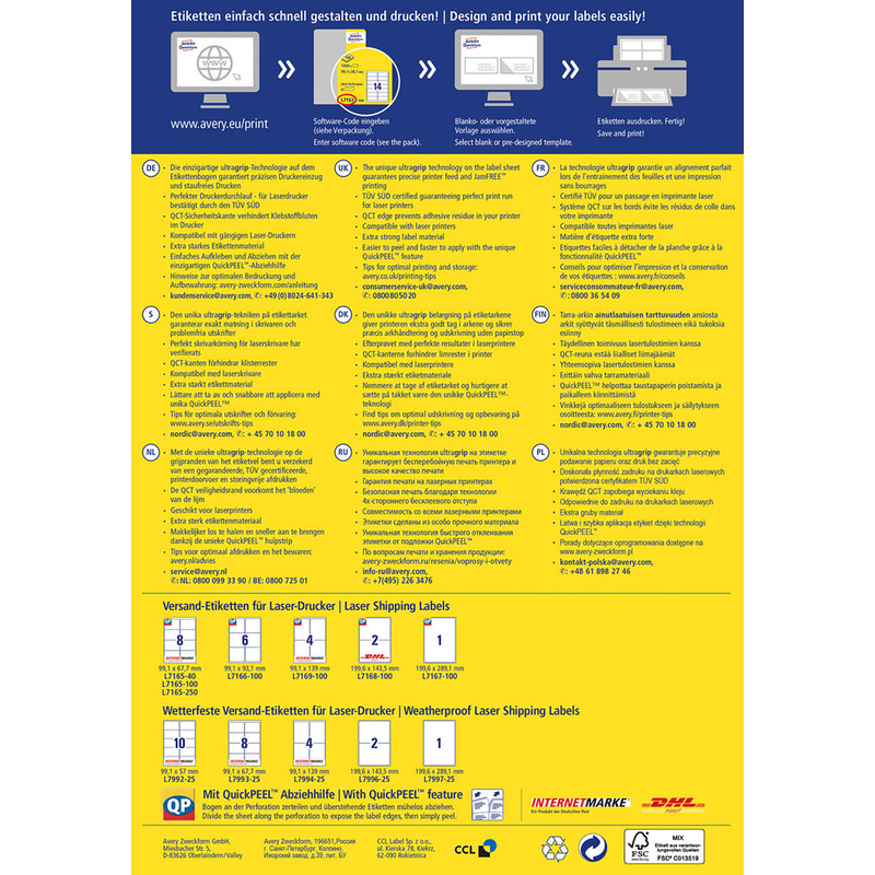 Artikelbild 1 für AVERY Zweckform Versandetiketten L7169-100 weiß 99,1 x 139,0 mm, 100 Blatt, Artikelnummer 358077