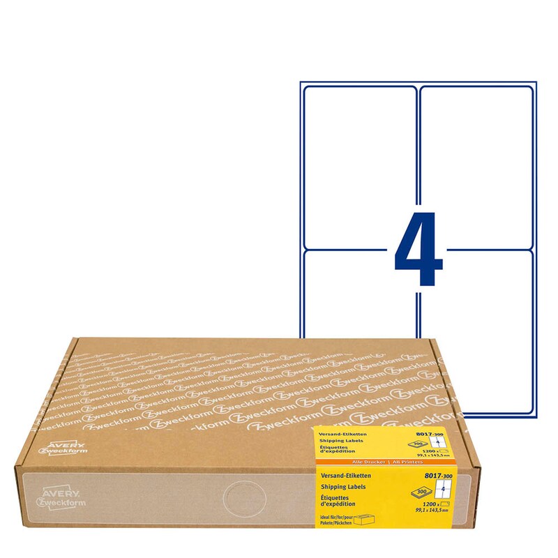 Artikelbild 1 für AVERY Zweckform Versandetiketten 8017-300 weiß 99,1 x 143,5 mm, 300 Blatt, Artikelnummer 433641