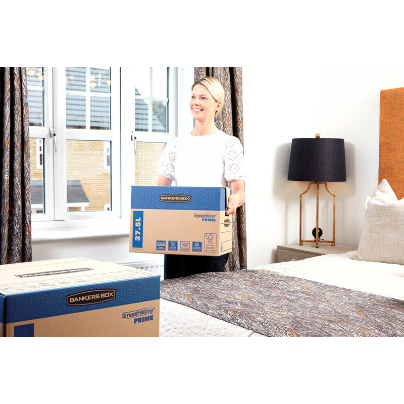 Die Bankers Box SmoothMove FastFold Umzugskartons bestehen aus hochwertiger Wellpappe und bieten maximale Stabilität. Sie sind ideal für den sicheren Transport von Haushaltsgegenständen, Akten oder Büromaterialien.