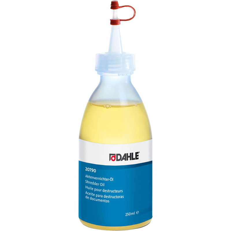 Damit Ihre vertraulichen Dokumente auch in Zukunft sicher und zuverlässig vernichtet werden können, bietet Ihnen DAHLE das Aktenvernichter-Öl in einer praktischen Flasche mit 250,0,ml an. Es sorgt dafür, dass jedes Rad optimal in das andere greift und Sie sich um nichts mehr Sorgen machen müssen.