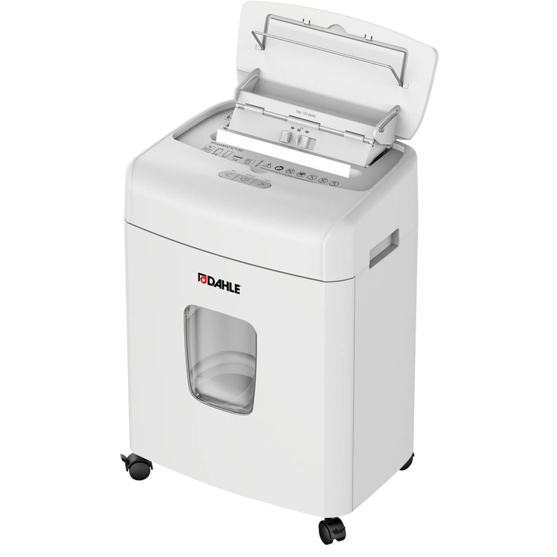 Ohne Kraftaufwand und besonders zeitsparend zerkleinert der DAHLE Aktenvernichter mit Partikelschnitt ShredMATIC 90 auch größere Mengen an Papierdokumenten. So schützen Sie vertrauliche Daten zuverlässig und minimieren das Risiko von Datendiebstahl. Der praktische herausziehbare Auffangbehälter ermöglicht eine schnelle und saubere Entleerung.