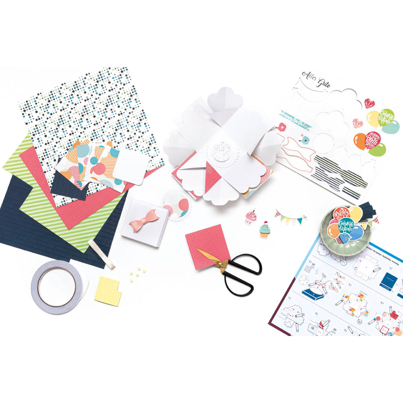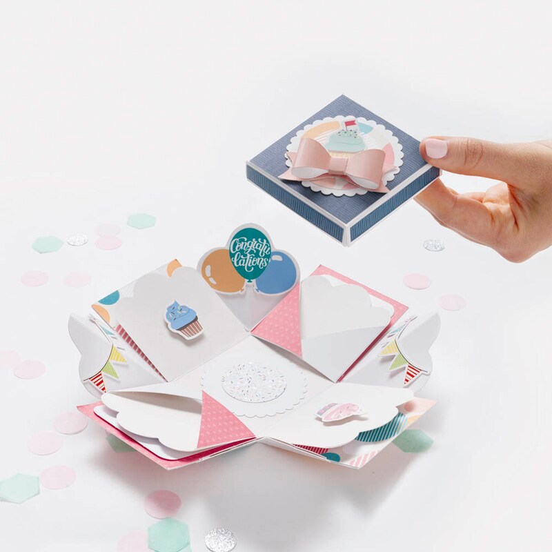 Macht das Auspacken zum Erlebnis – folia Explosionsbox Party 46 tlg. Bastelset