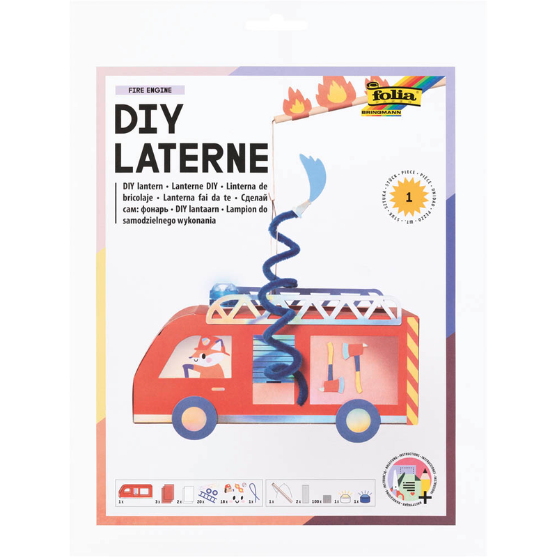 Das folia FIRE ENGINE Bastellaternen-Set bietet alles, was Sie für eine individuelle und leuchtende Laterne benötigen, und sorgt für kreative Stunden beim Basteln.
