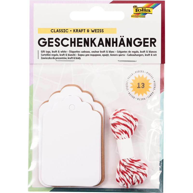 | Besonderheiten | 12 längliche Papier-Geschenkanhänger, in natur & weiß, inkl. 2 m Schnur |