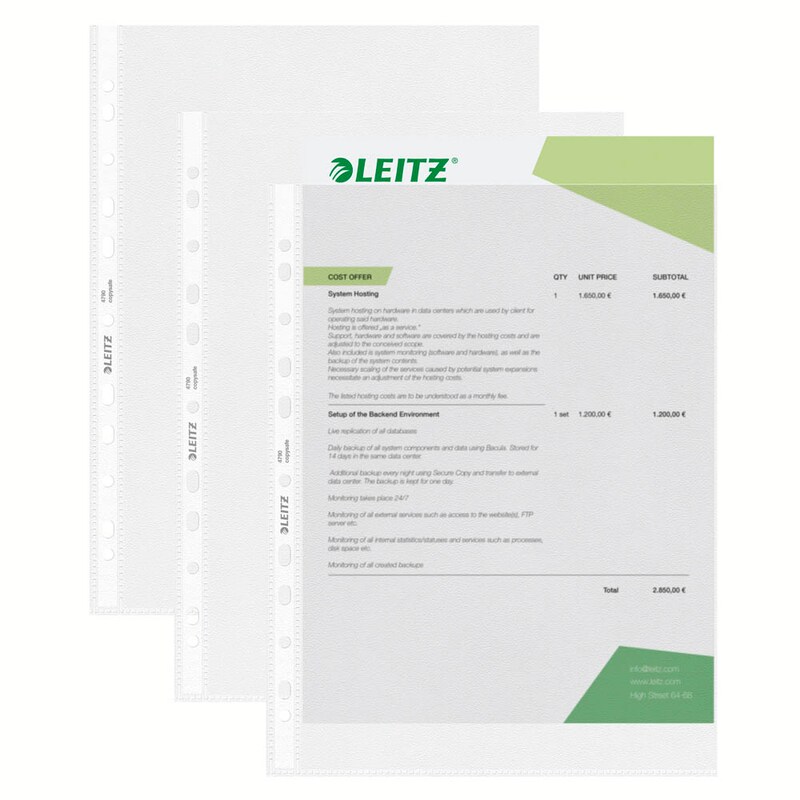 Also bestellen Sie die LEITZ Prospekthüllen 4790 DIN A4 transparent genarbt 0,085 mm, 100 St. einfach und bequem hier im Online-Shop und lassen Sie sich überzeugen!