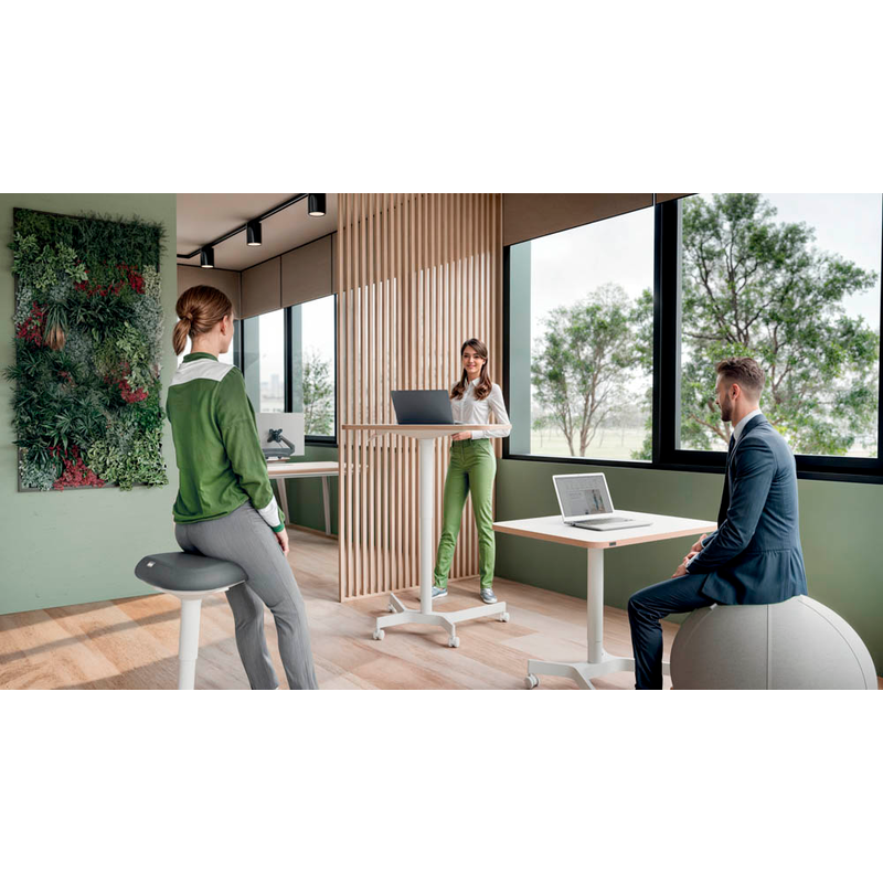 Warum nicht mal eine andere Sitzmöglichkeit wählen: der LEITZ Hocker Ergo Active ist vielseitig einsetzbar.
