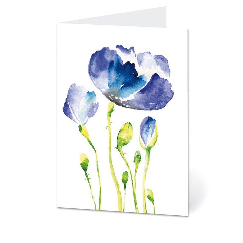 Durch den Verzicht auf einen Text zu einem bestimmten Anlass ist diese stimmungsvolle Grußkarte mit blauen Blumen in Aquarelltechnik vielseitig einsetzbar. Bestimmen Sie selbst, ob Sie die Karte als Geburtstagskarte, Jubiläumskarte oder einfach nur als Karte für einen herzlichen Gruß verwenden möchten.