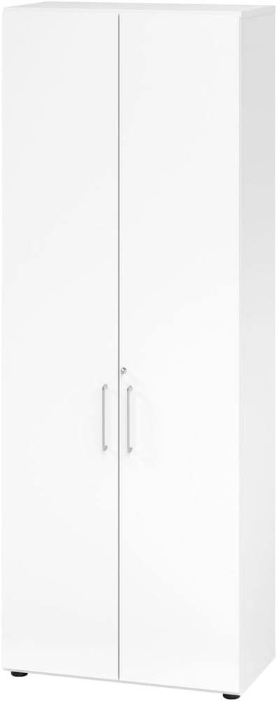 Moderne Bügelgriffe aus silberfarbenem Stahl verleihen diesen Möbel-Elementen ein edles Aussehen.