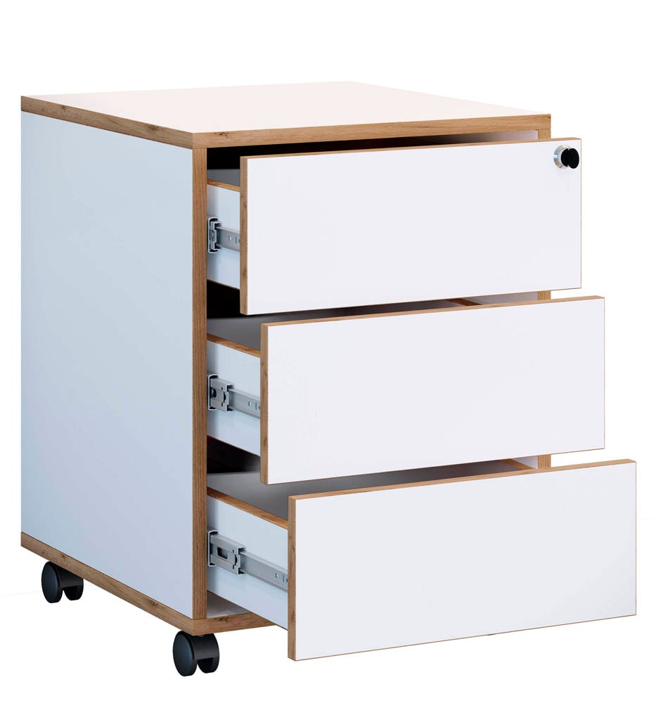 Pflegeleichte und strapazierfähige Oberflächen durch Melaminharzbeschichtung runden das Bild einer robusten Möbelserie ab.