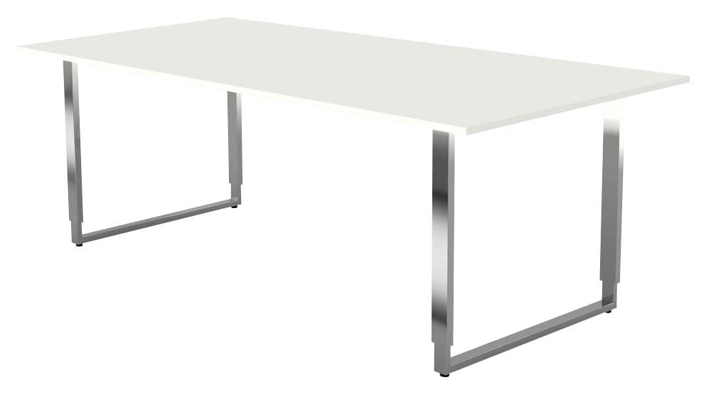 Für höchste Qualitätsansprüche entwickelt, verbindet Yukon modernes Design mit langlebiger Verarbeitung. Die melaminharzbeschichtete Tischplatte ist besonders strapazierfähig und pflegeleicht, während das stabile Kufen-Gestell aus silberfarbenem Edelstahl für eine elegante Optik und sicheren Stand sorgt. Der ABS-Kantenschutz erhöht zusätzlich die Sicherheit am Tischrand.