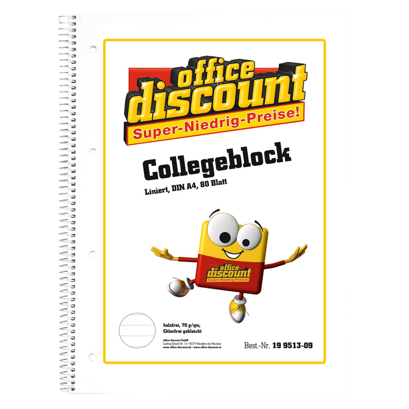 Die office discount Collegeblöcke sind sowohl im Büro, in der Schule als auch in der Uni unverzichtbar. Denn die praktischen Helfer dienen Ihnen als unerlässliche Begleiter bei Konferenzen, Besprechungen, Firmenrundgängen, Vorlesungen, im Unterricht u. v. m.