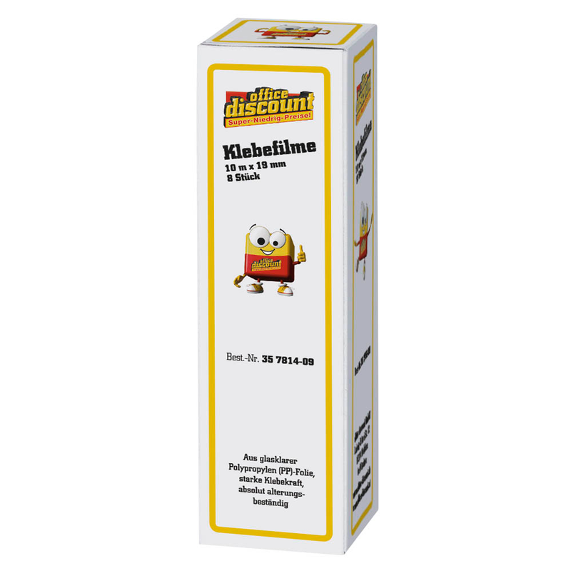 Artikelbild 2 für office discount Klebefilm transparent 19,0 mm x 10,0 m 8 Rollen, Artikelnummer 357814 Artikelbild 3 für office discount Klebefilm transparent 19,0 mm x 10,0 m 8 Rollen, Artikelnummer 357814