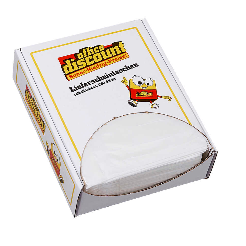 Damit Ihre Begleitpapiere sicher, portofrei und zusammen mit Ihrer Ware ankommen, greifen Sie am besten zu den selbstklebenden Lieferscheintaschen von office discount. Diese selbstklebenden Lieferscheintaschen kleben auf Papier, Karton, Metall oder Kunststoff. Die leimfreie Zone am Einsteckschlitz und der Abziehstreifen erleichtern Ihnen das Einstecken und Entnehmen der Begleitdokumente.