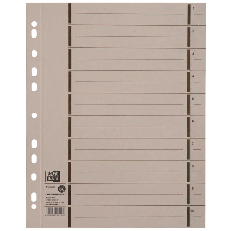 AKTION OXFORD Trennblätter DIN A4 1-10 grau, 250 g/qm, 100 St. + GRATIS tesa Mini-Korrektur-Roller, blau