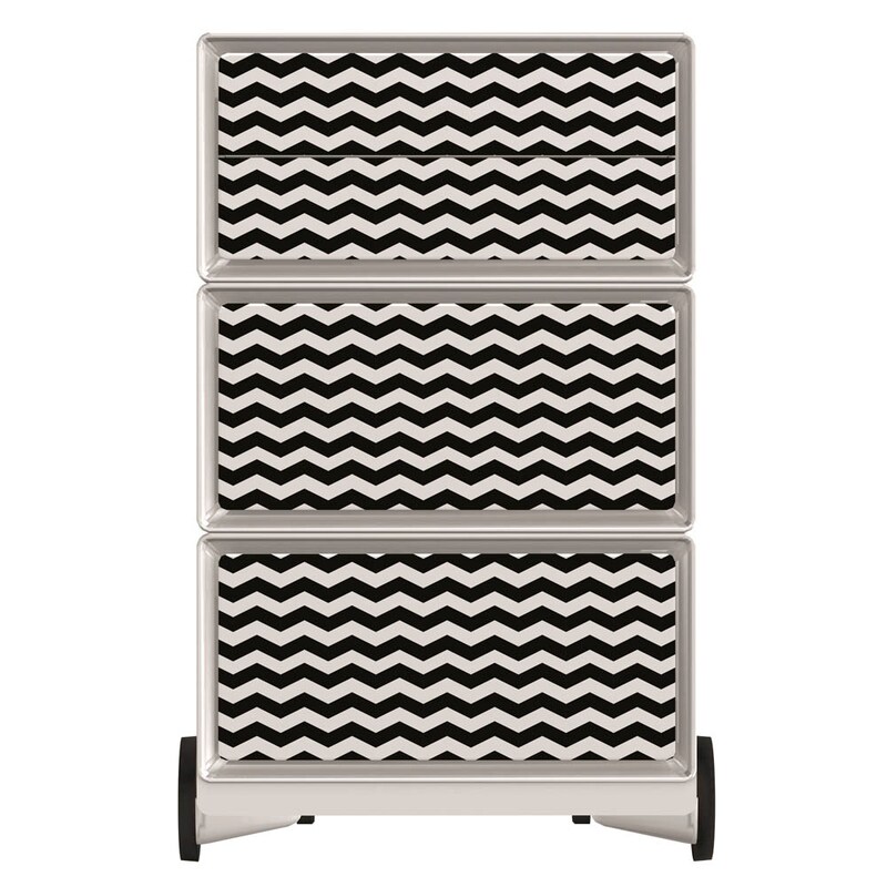 Sie erhalten einen Artikel mit einer beständigen Qualität, denn der Korpus besteht aus Polystyrol. Die kratzfeste Oberfläche aus poliertem ABS ist pflegeleicht und schützt vor Kratzern und Feuchtigkeit. Dieses Möbel mit dieser stylischen Farbkombination wirkt sehr modern. Weiß ist die Farbe des Korpus, die Schubladenfarbe ist schwarz, weiß. Das Modell weist außerdem diese Eigenschaften auf: Mit 4 Rollen, davon 2 multidirektional. 2 Doppelschubladen Nutzmaß: 32,5 x 40,5 x 6,0 cm und 2 horizontale Schubladen Nutzmaß: 32,5 x 40,5 x 13.3 cm (BxTxH).