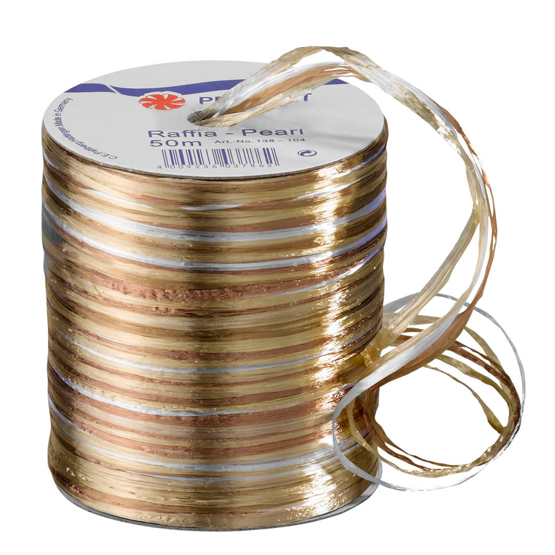 PRÄSENT Geschenkband Raffia glänzend braun/beige/gold 3,0 mm x 50,0 m