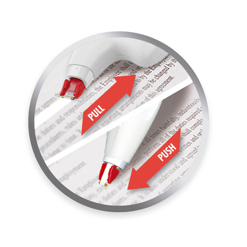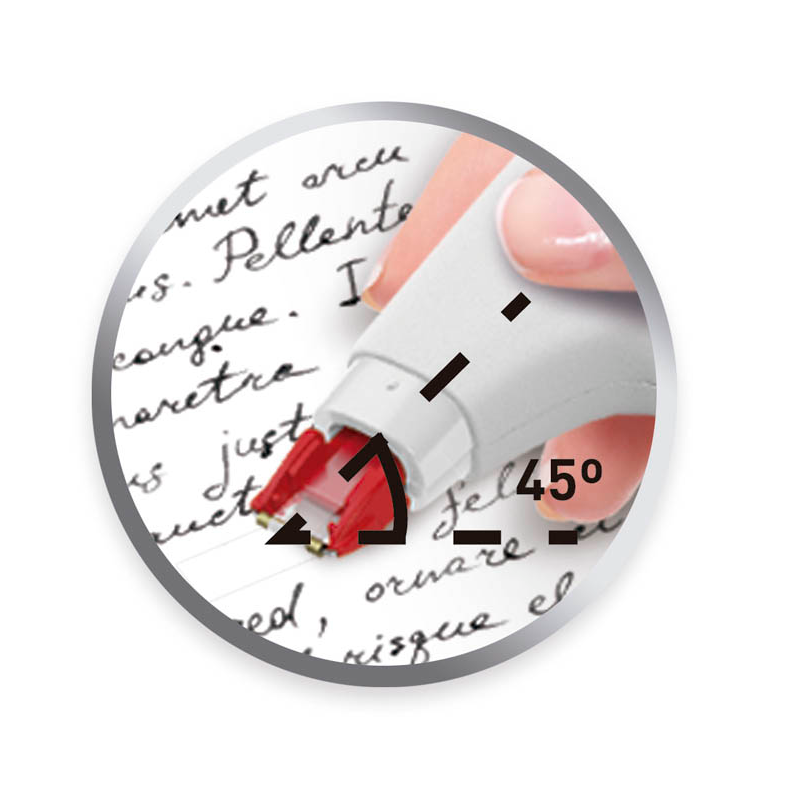 Der Pritt eco flex Korrekturroller liegt mit seiner ergonomischen Form bequem in der Hand und lässt sich superleicht handhaben. Dank der Push & Pull-Funktion für eine beidseitige Anwendung ist der Korrekturroller sowohl für Links- wie auch Rechtshänder perfekt geeignet. Wenn Sie Sätze korrigieren möchten einfach ziehen, zum Korrigieren einzelner Buchstaben einfach drücken! Mit seiner flexiblen Spitze lässt sich der Pritt eco flex auch seitlich abrollen. Und bei Nichtgebrauch ist die Spitze durch die Schutzkappe bestens geschützt.