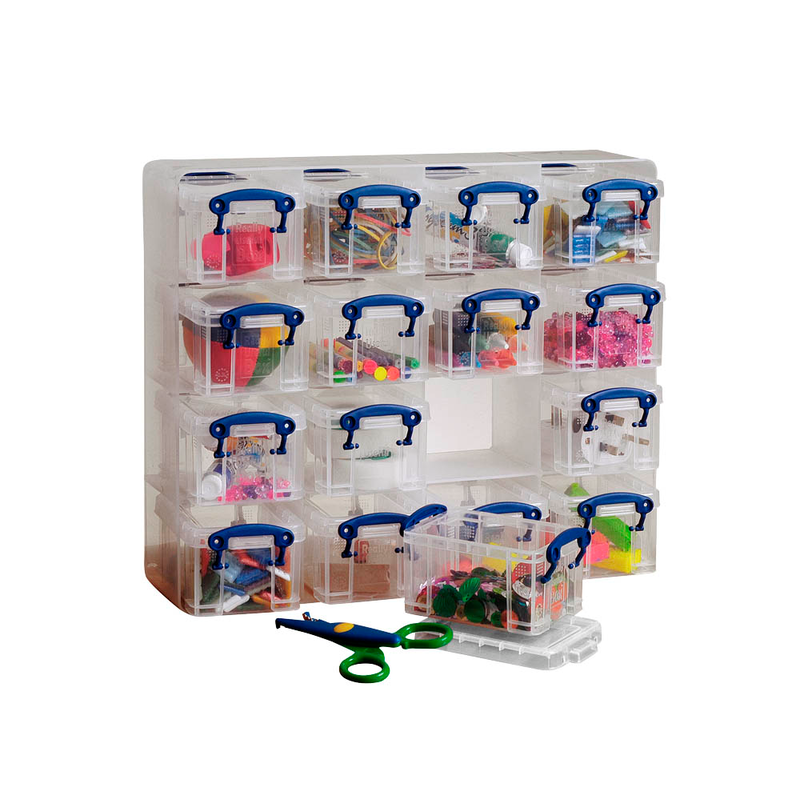 1,64 kg ist das Gewicht des Really Useful Box Kleinteilemagazins, die Abmessungen betragen 37,5 x 12,5 x 31,0 cm (BxTxH). Dank Innenmaßen von 9,0 x 6,5 x 5,5 cm (BxTxH) und einem Fassungsvermögen von 16x 0,3 l ist es ausreichend groß für die Aufbewahrung Ihrer Habseligkeiten.