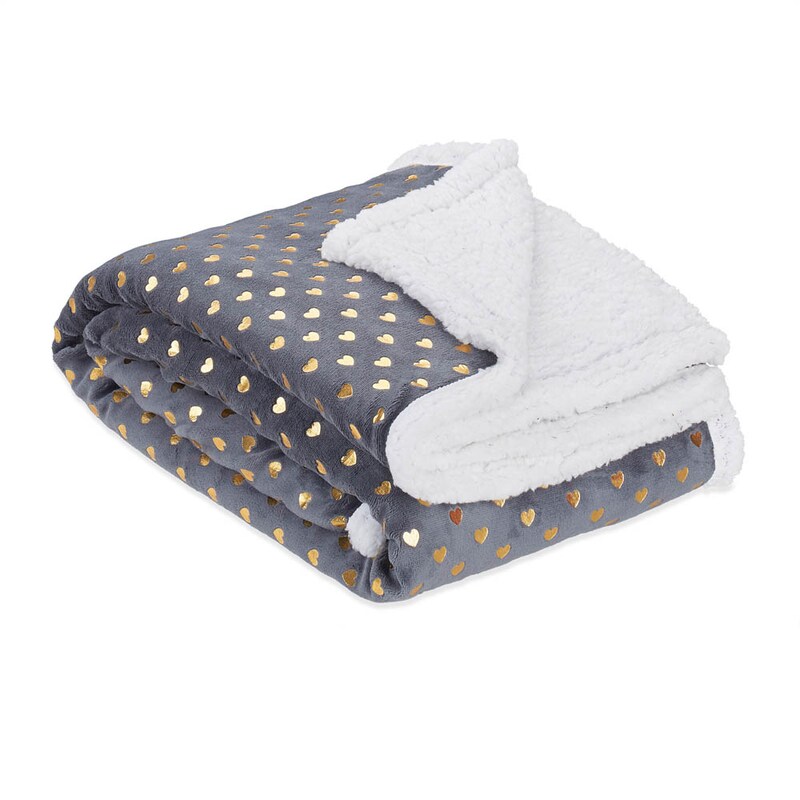 Artikelbild für relaxdays Kuscheldecke grau, weiß, goldene Herzen 150,0 x 200,0 cm, 1 St., Artikelnummer 644457