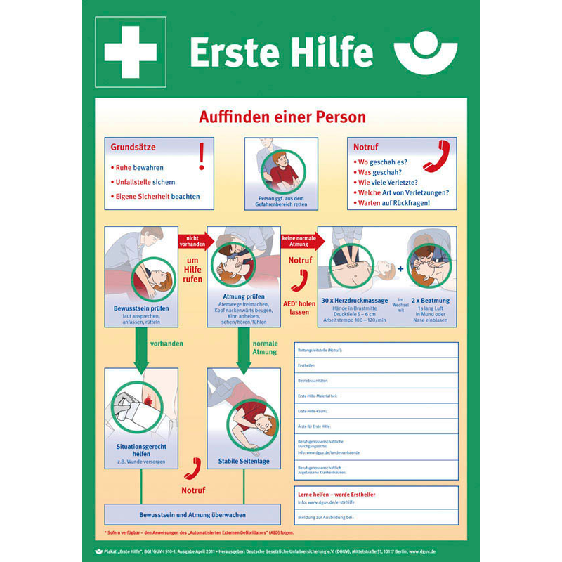 Schildtext Anleitung zur Ersten Hilfe