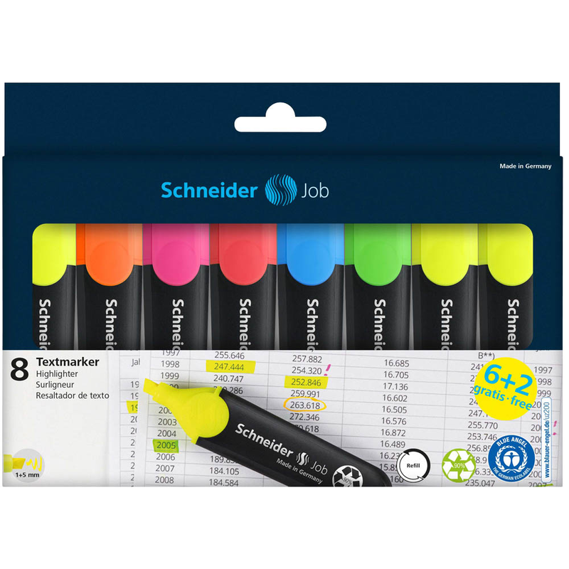 6 + 2 GRATIS: Schneider Job Textmarker farbsortiert, 6 St. + GRATIS 2 St.