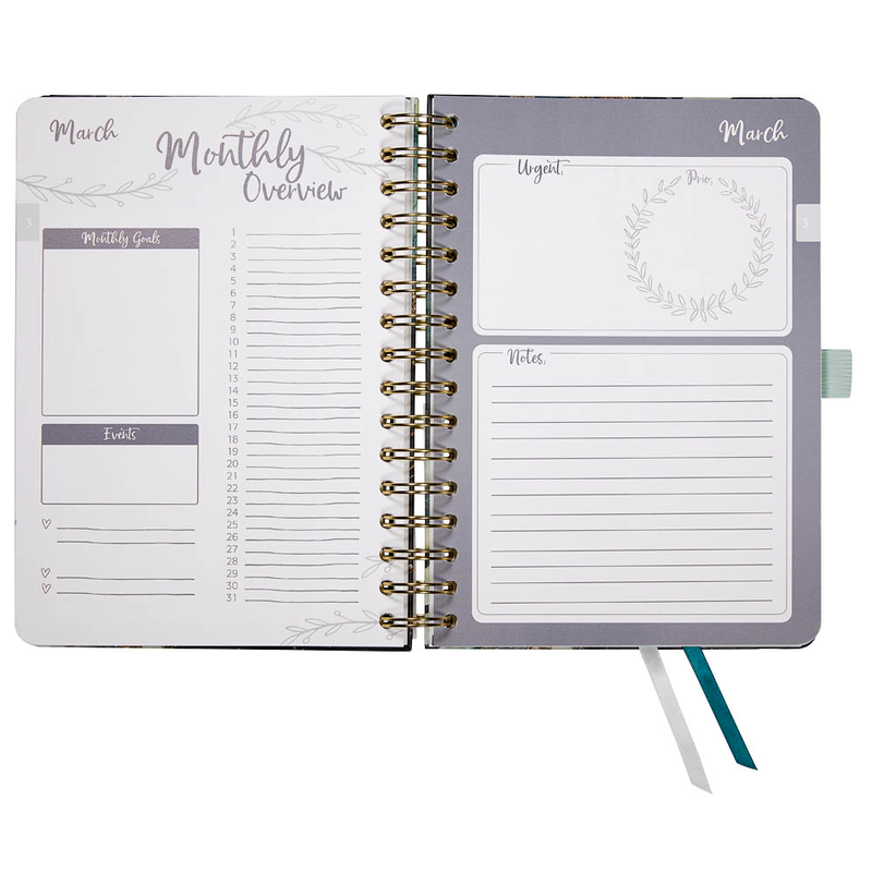 Der Zeitplaner teilt sich wie folgt auf: 106 Seiten Kalendarium, 117 Seiten Infoteil, 17 Seiten Notizen. Mit diesem Exemplar können Sie sich hervorragend von Woche zu Woche vorarbeiten. Auf zwei Kalenderseiten finden Sie immer die Übersicht über eine gesamte Woche.