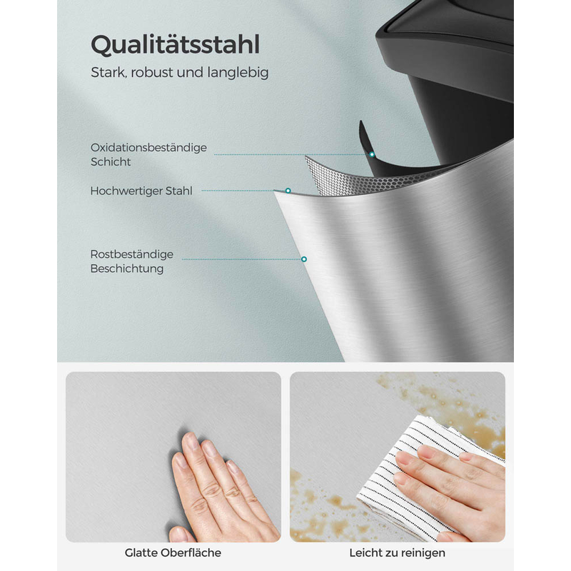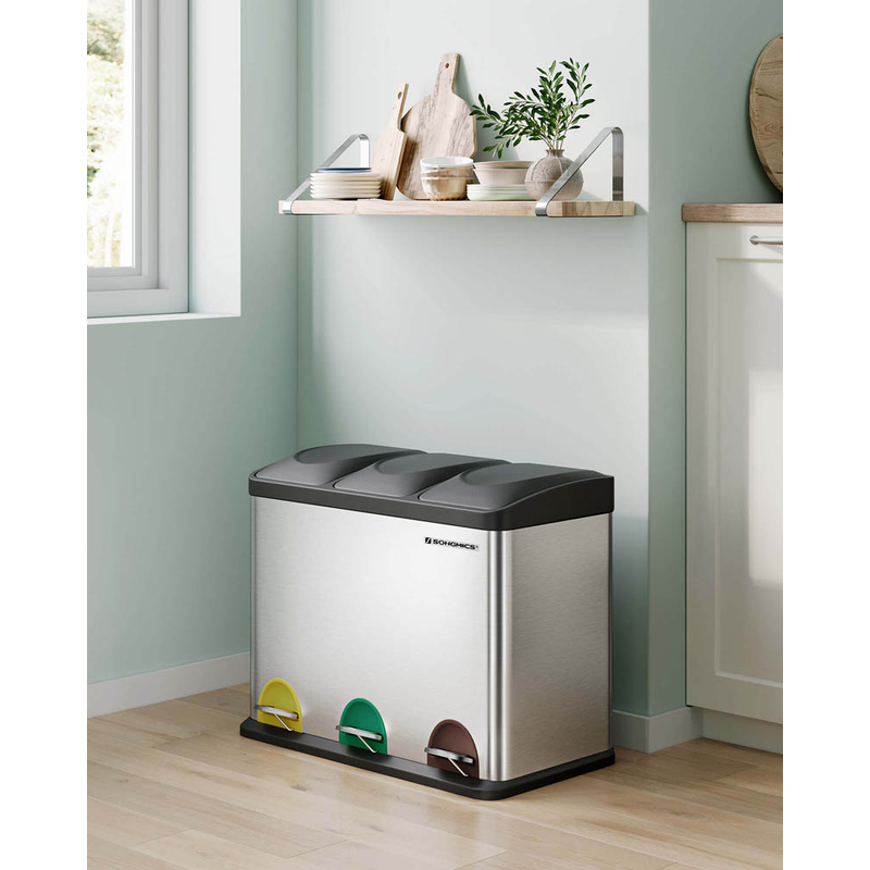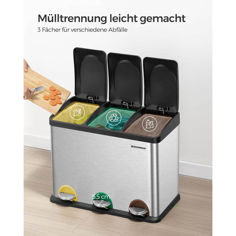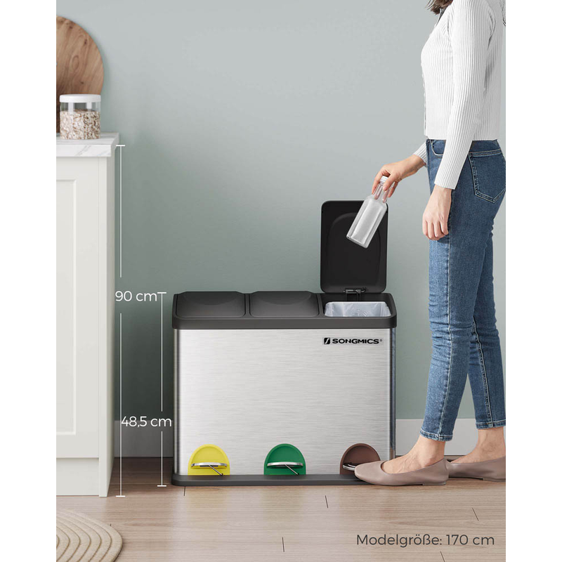 Mit dem SONGMICS Mülltrenner klappt die Mülltrennung ganz einfach und sauber. Mit ihm erhalten Sie eine rundum saubere, durchdachte Lösung, um den anfallenden Müll zu entsorgen. Er bietet genügend Kapazität für jede Art von Müll, sei es Kunststoff, Papier oder Restmüll.