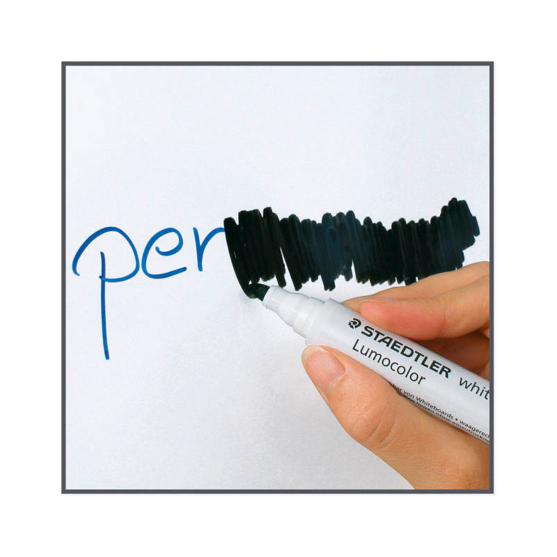 Das Produkt besitzt eine klassisch runde Spitze – für die vielseitige Nutzung. Sie hat hierbei eine Strichstärke von 1,0 mm. Dazu ist es ganz einfach, die Tinte der STAEDTLER Whiteboard-Marker pen wieder wegzuwischen – mit einem feuchten Tuch z.B. funktioniert dies schnell und vollkommen spurlos.