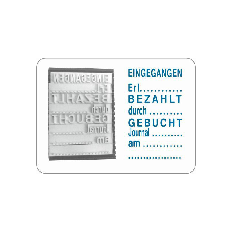 Lieferung inkl. 3 Standardtextplatten kostenlos mit dabei: BEZAHLT, EINGEGANGEN, GEBUCHT