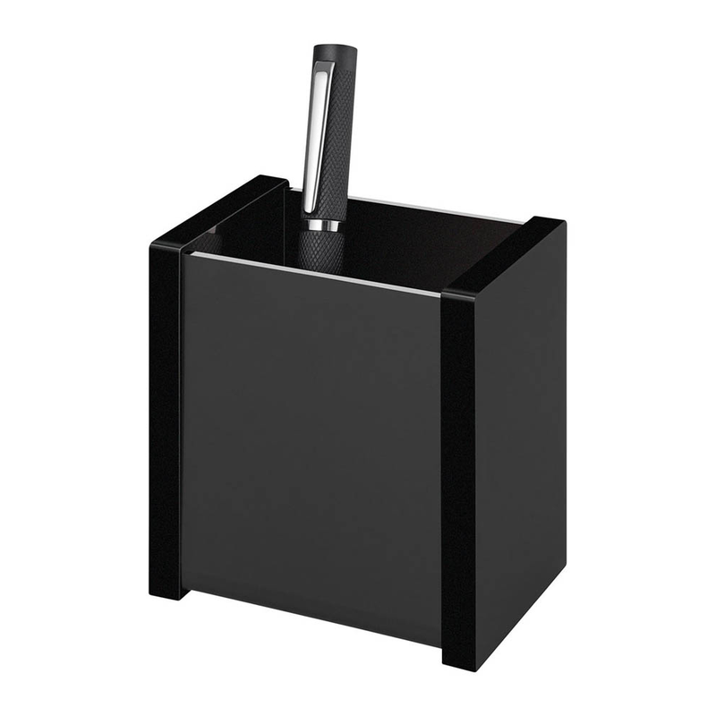 Der Stifteköcher eignet sich für die Ablage von Kugelschreibern, Bleistiften, Markern und vielem mehr. Bei einer Größe von 6,0 x 8,7 x 9,6 cm (BxTxH) passt er auf jeden Schreibtisch.